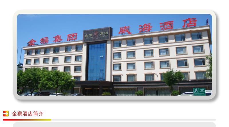 ★金猴集團威海酒店座落于威海高技術(shù)產(chǎn)業(yè)開發(fā)區(qū)丹東路88號,是金猴集團下設(shè)的全資子公司,酒店于05年6月營業(yè),是以餐飲、客房、會議為主體的掛牌三星級旅游飯店,同時擁有“全國工業(yè)旅游示范點”、“黨政機關(guān)定點接待飯 店”、“山東旅游服務(wù)名牌”、“威海市優(yōu)秀旅游飯店”四項行業(yè)榮譽。