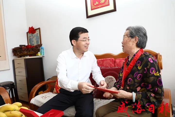 6月22日,在慶祝中國(guó)共產(chǎn)黨建黨100周年前夕,威海市委書記張海波走訪慰問(wèn)我公司老黨員高素貞,為她佩戴“光榮在黨50年”紀(jì)念章,并祝福老人健康長(zhǎng)壽、闔家幸福。