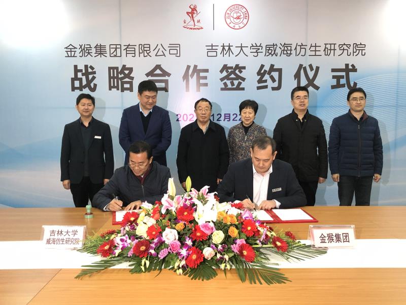 12月23日,金猴集團(tuán)有限公司與吉林大學(xué)威海仿生研究院簽署戰(zhàn)略合作協(xié)議,雙方將基于各自所擁有的產(chǎn)業(yè)優(yōu)勢以及教學(xué)、科研、人才等方面優(yōu)勢開展深度合作,攜手引領(lǐng)科技健康時尚新潮流。